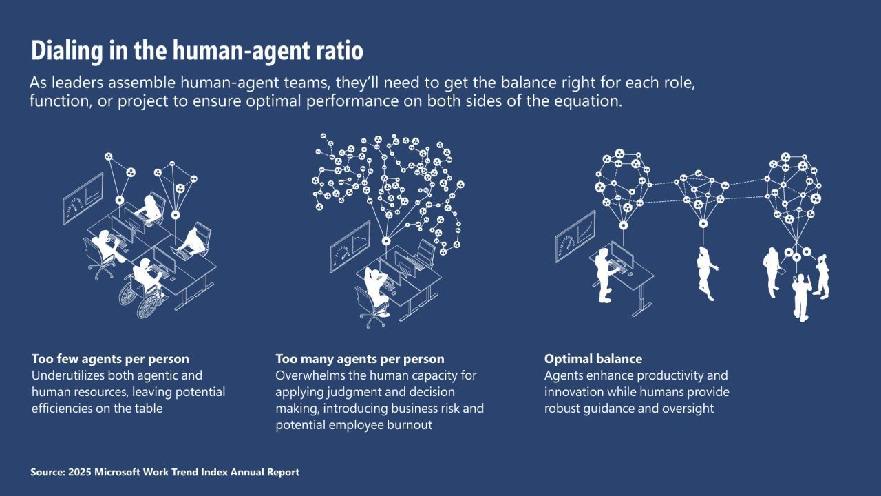 Besonderes Augenmerk legt die Studie auf die richtige Human-Agent Ratio: Nur wenn das Verhältnis zwischen menschlicher Steuerung und KI-Unterstützung gut austariert ist, können die erhofften Effizienz- und Innovationsgewinne tatsächlich realisiert werden. Die Visualisierung im Bericht zeigt, dass sowohl ein Mangel an KI-Unterstützung als auch ein Übermaß an Agenten problematisch sein kann – entweder werden Potenziale nicht genutzt oder die menschliche Entscheidungsfähigkeit wird überfordert.